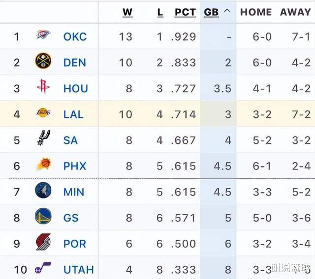 Sau chiến thắng đậm trên sân khách của Lakers, họ cũng liên tiếp nhận được tin vui. Quân đoàn Tím và Vàng tạm thời ổn định thứ hạng top bốn tại Western Conference. Thành tích hiện tại của Lakers là 10 trận thắng và 4 trận thua, hơn đội xếp sau Spurs một trận. Tuy nhiên, do lần gặp nhau đầu tiên của mùa giải mới nên Lakers đã suýt giành được 2 điểm trên sân nhà nên dù có giữ nguyên thành tích thì Lakers cũng sẽ tạm xếp trước Spurs và sẽ không bị áp lực nhiều về thành tích trong thời gian ngắn.